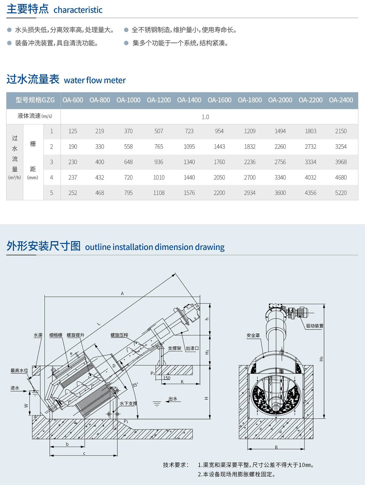 處理,適合柵隙較小渠深較淺的廢水處理場合。