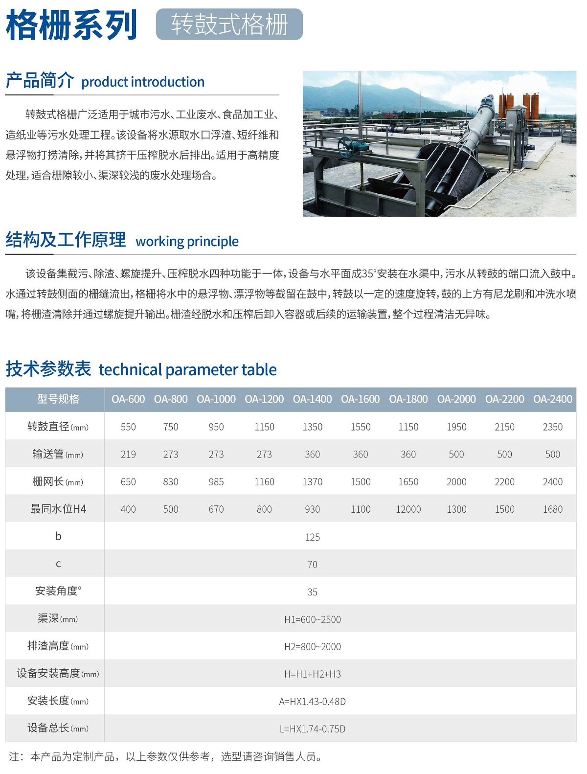 轉鼓式格柵適用于城市污水、工業廢水、食品加工業、造紙業等污水處理工程。該設備將水源取水口浮渣、短纖維和懸浮物打撈清理,并將其擠干壓榨脫水后排出。適用于高精度